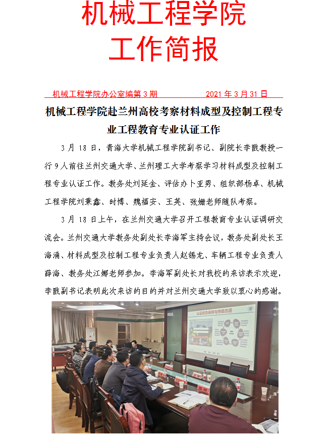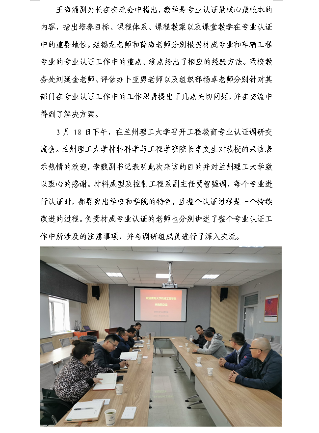 黄色网 赴兰州高校考察材料成型及控制工程专业工程教育专业认证工作