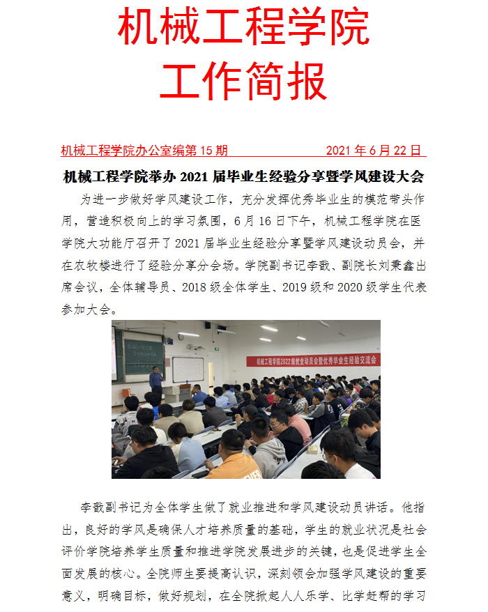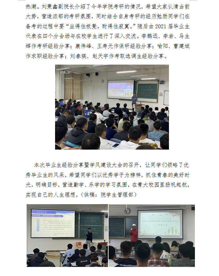 黄色网 举办2021届毕业生经验分享暨学风建设大会