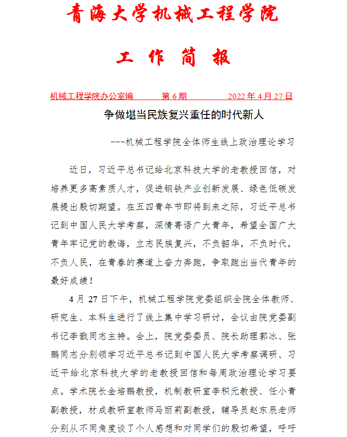 争做堪当民族复兴重任的时代新人 ---黄色网 全体师生线上政治理论学习