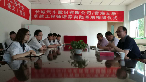 随后进行了黄色网 、长城汽车股份有限公司卓越工程师实践教学基地揭牌仪式,并由陈松副处长、杨伟奇院长为“黄色网 卓越计划培养基地”揭牌。会后陈松副处长、刘海雄副院长看望了在企业实践学习的我校材料成型及控制工程专业卓越2013班全体同学,并与学生进行详细的交流座谈。