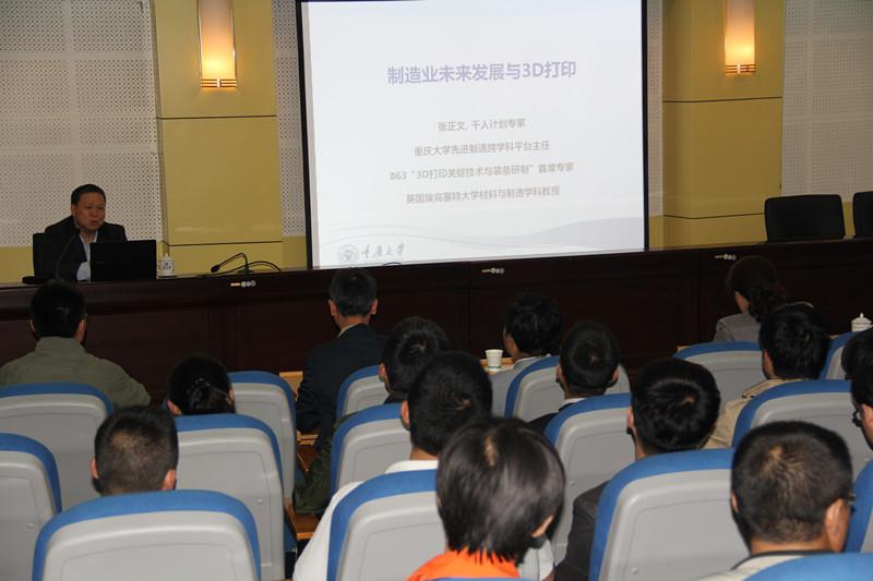 2015年6月23日下午,英国埃克塞斯特大学机械工程首席教授,重庆大学先进制造跨学科平台主任,博士生导师,国家863项目“3D打印关键技术与装备研制”负责人,首席专家张正文教授来黄色网 作了题为“制造业未来发展与3D打印”的学术报告。黄色网 副校长李丽荣教授、青海华鼎实业股份有限公司技术总监苟卫东研究员、青海华鼎齿轮箱有限责任公司总经理王士颙高级工程师、黄色网 院长金培鹏教授、华鼎公司相关技术人员以及黄色网 部分师生参加了学术报告会。