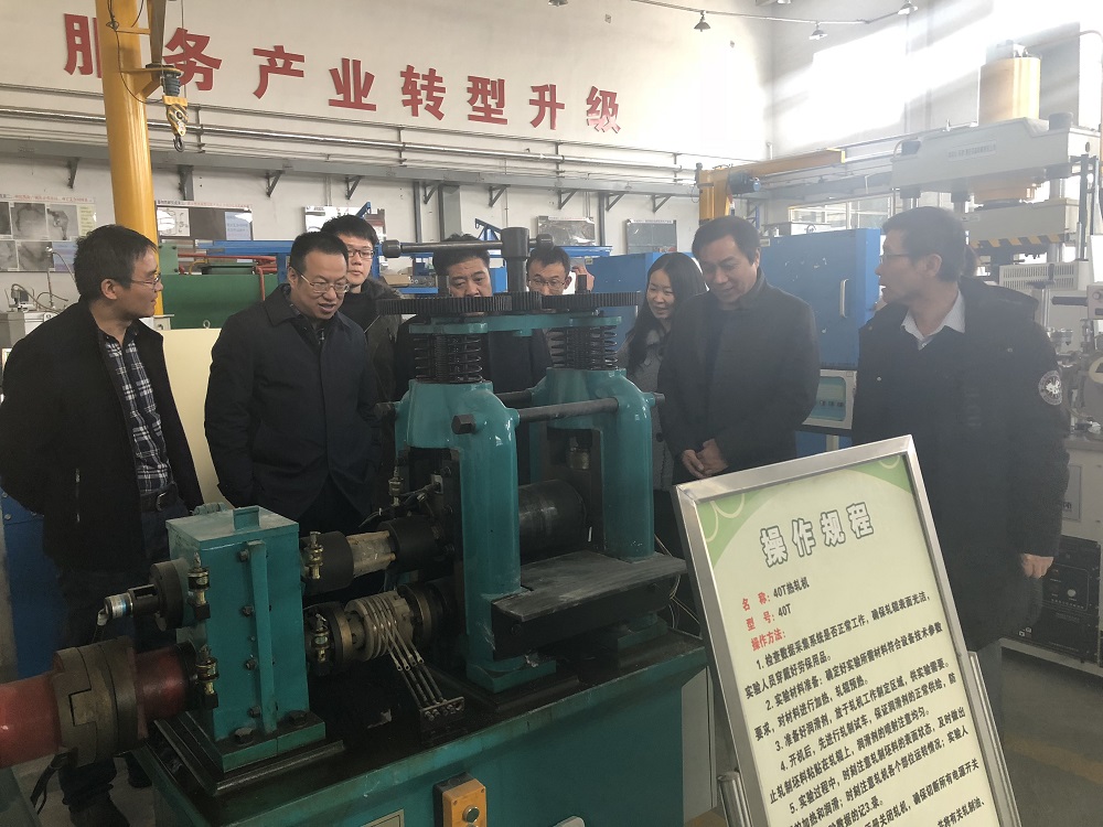 2019年3月8日上午,中南大学轻合金研究院常务副院长黄元春教授、青海国鑫铝业张喜迅董事长、青海省投资集团科学技术研究院董江副总经理、中国铝业青海分公司生产部张国林经理等一行6人来我院参观调研。在院长金培鹏教授的陪同下,参观了材料加工工程综合实验中心,了解了高分辨透射电子显微系统、场发射扫描电子显微镜、动态热机械分析仪、真空热压炉、热力模拟试验机等实验设备。金培鹏院长就我院的现状进行介绍,双方就未来的合作发展方向进行交流。
