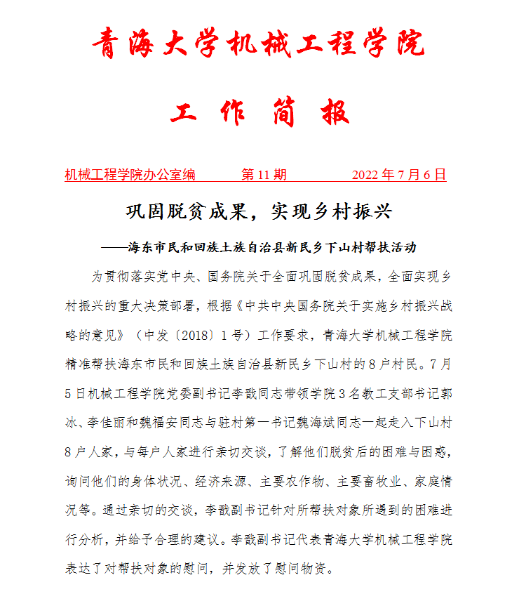 巩固脱贫成果,实现乡村振兴 ——海东市民和回族土族自治县新民乡下山村帮扶活动