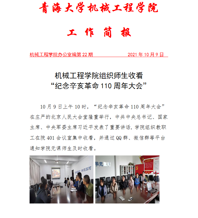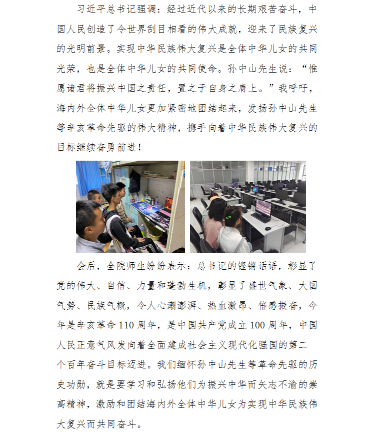 黄色网 组织师生收看“纪念辛亥革命110周年大会”