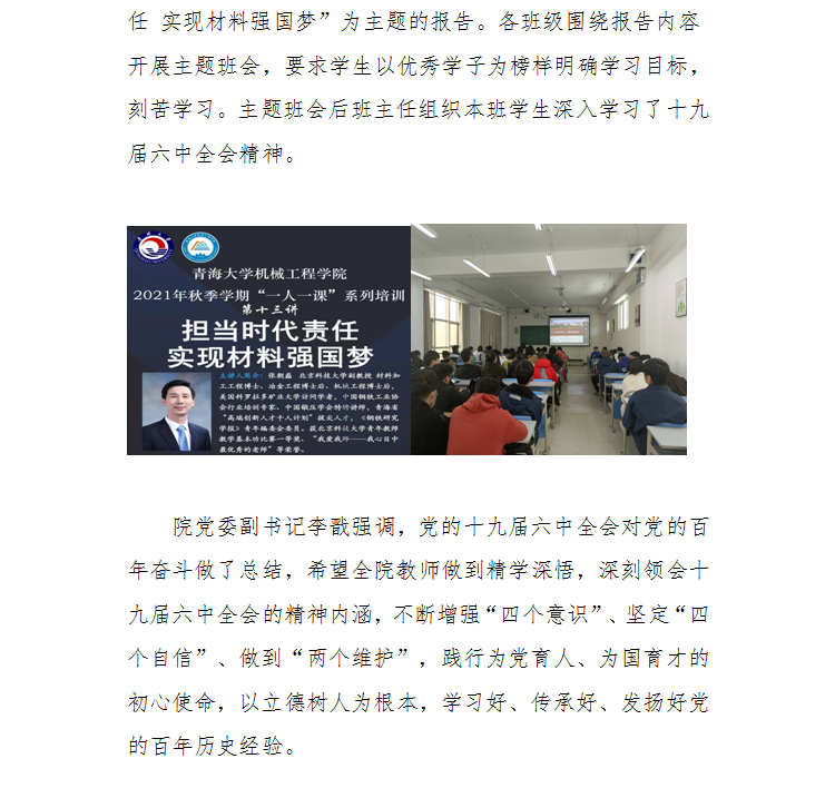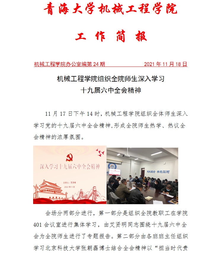 黄色网 组织全院师生深入学习十九届六中全会精神